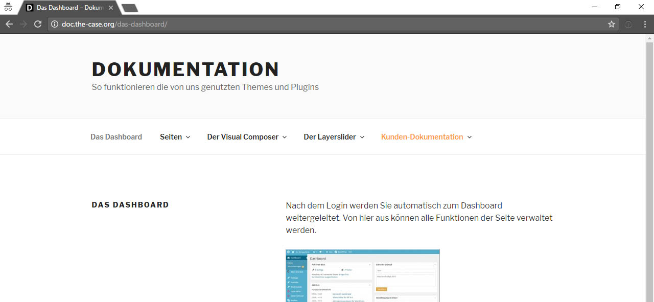 Der Admin-Bereich, in dem ein eingeloggter Nutzer Seiten, Beiträge und Einstellungen bearbeiten kann. Wie sie sich ins Backend einloggen können, erfahren Sie hier.