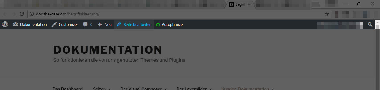 Eine Leiste mit verschiedenen Werkzeugen, die einem eingeloggten Nutzer beim Aufruf des Frontends angezeigt wird.