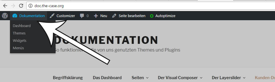 Das Dashboard ist für eingeloggte Nutzer zudem erreichbar, indem Sie auf einer beliebigen Seite im Frontend auf den Seitennamen oben links klicken.
